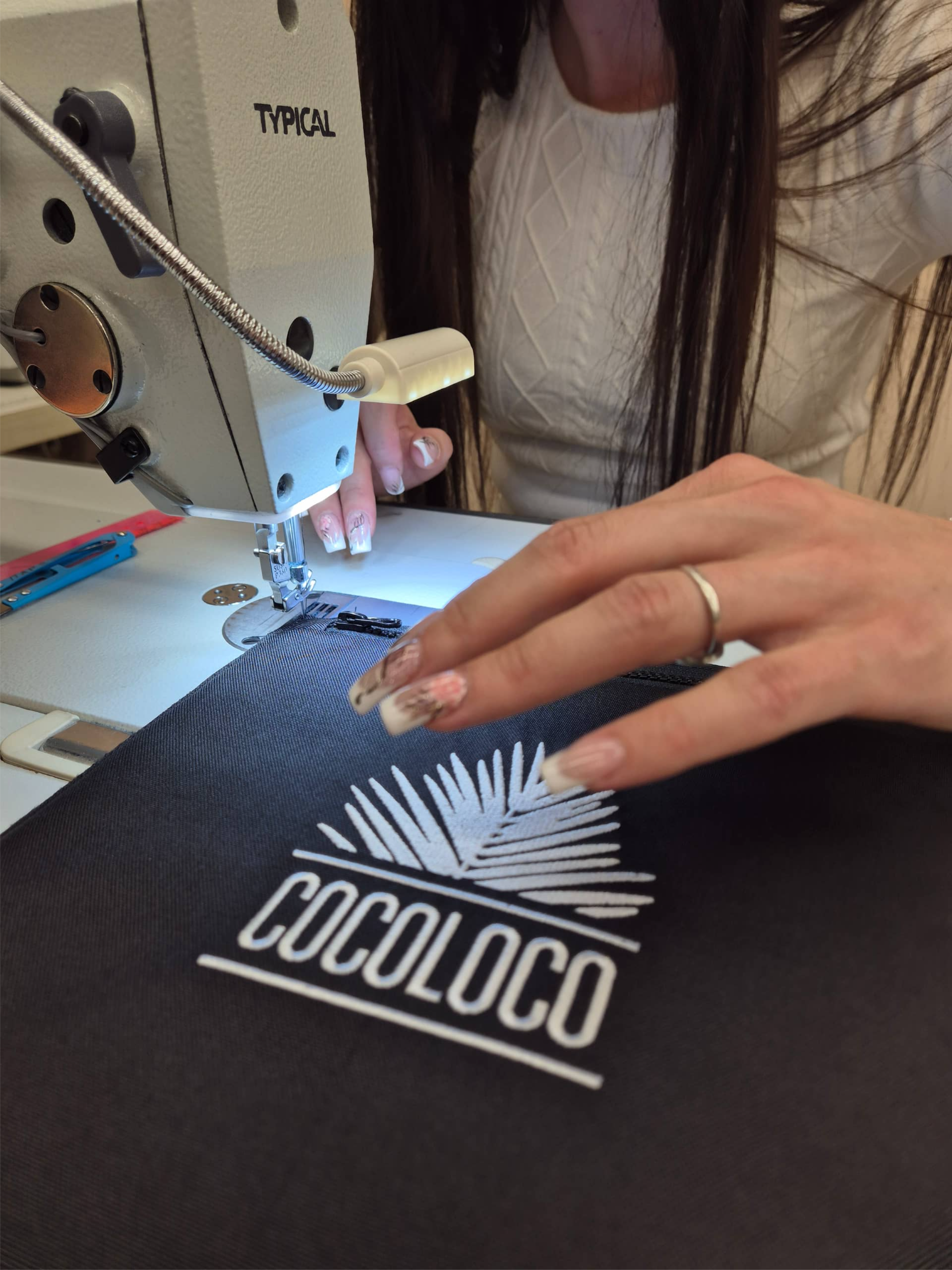 - Затем разрабатываем дизайн изделия и шьем сигнальный образец, который будет примером для дальнейшей партии при пошиве и брендинге.